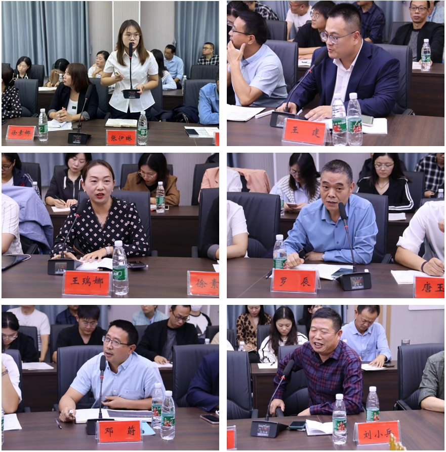 ? ? ? ? 下午,活動(dòng)嘉賓來到會(huì)議室進(jìn)行說課、評(píng)課。語(yǔ)文、物理兩組教師分學(xué)科進(jìn)行說課,王瑞娜校長(zhǎng)、羅辰研究員、鄧蒔研究員、劉小兵校長(zhǎng)依次評(píng)課,稱贊這四節(jié)展示課亮點(diǎn)頗多,教學(xué)方式靈活多樣,學(xué)生興趣十足、熱情高漲,注重新課標(biāo)的落實(shí),面向全體學(xué)生培養(yǎng)核心素養(yǎng),實(shí)現(xiàn)了技術(shù)賦能下的智慧課堂教學(xué)理念。評(píng)課嘉賓還真誠(chéng)的鼓勵(lì)年輕教師要繼續(xù)深入研究新課標(biāo),學(xué)習(xí)新技術(shù),留心細(xì)節(jié),注意規(guī)范,追求完美。