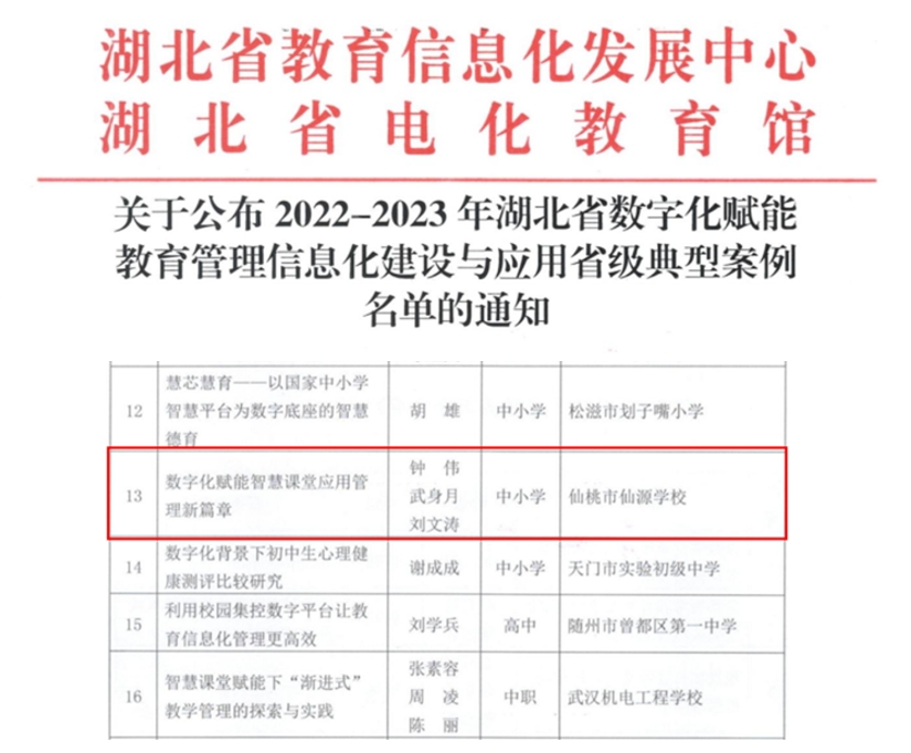 仙源學(xué)校成功入選湖北省數(shù)字化賦能教育管理信息化建設(shè)與應(yīng)用典型案例